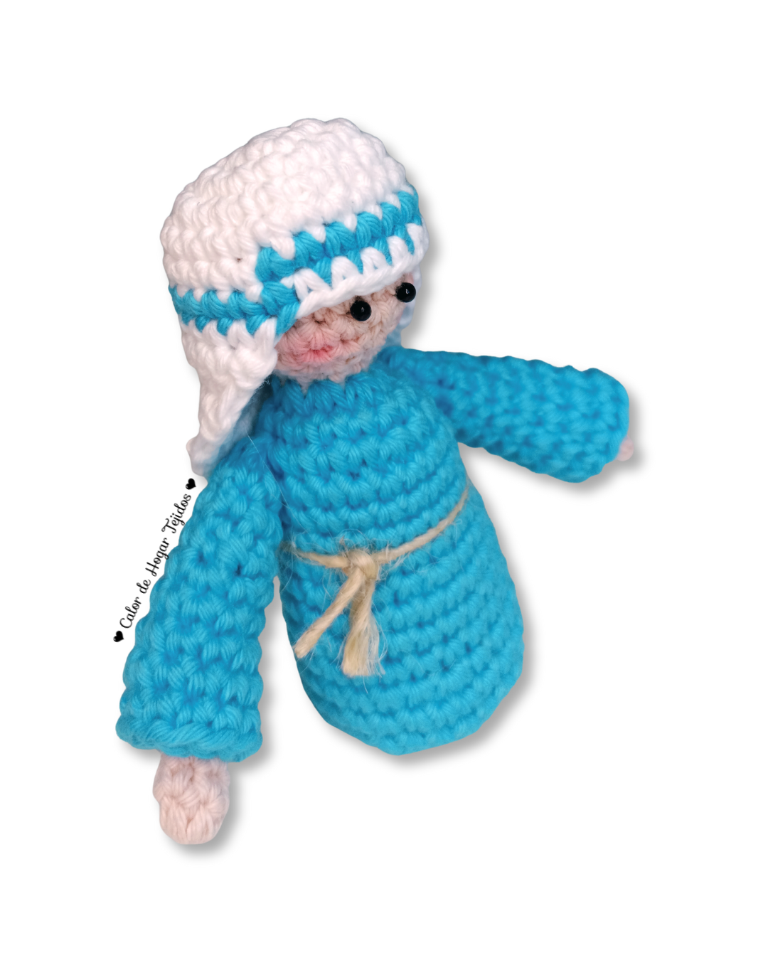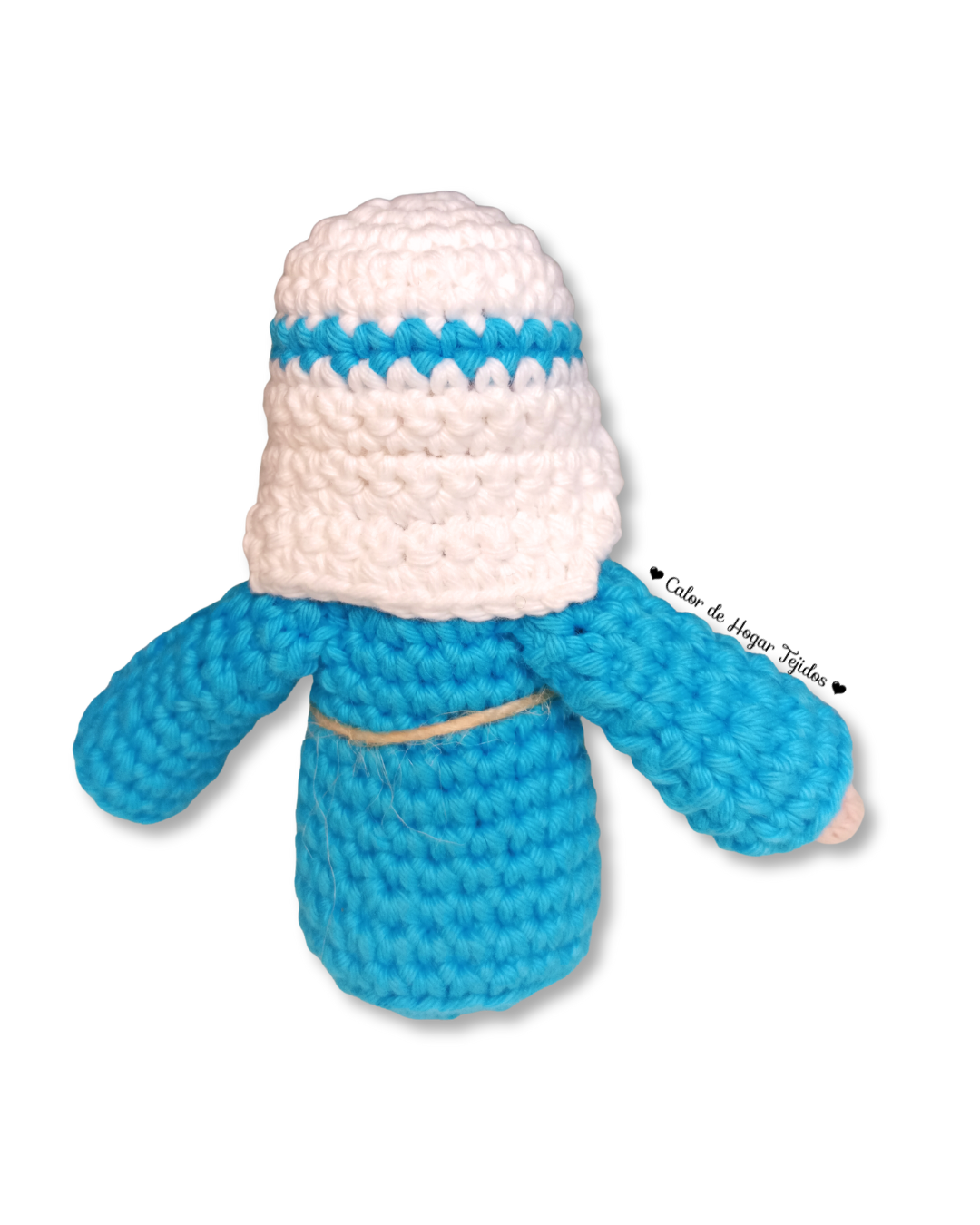 En esta GUÍA DE TEJIDO o patrón de amigurumi navideño aprenderás a tejer a: José, integrante de la familia del Pesebre. Este proyecto incluye su túnica azul, capucha y detalles sencillos. Es perfecto para hacer como pieza independiente o como parte de la «Corona Navideña» que estamos creando.